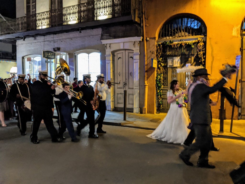 Second Line parades happen pretty much every Sunday (well, they would, unless there’s a pandemic going on), but if you’re lucky enough you might catch one for a wedding or a funeral: I stumbled upon one for a wedding in Royal street.