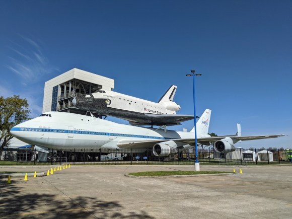 The Space Shuttle (replica) on top of the SCA 905 (real)
