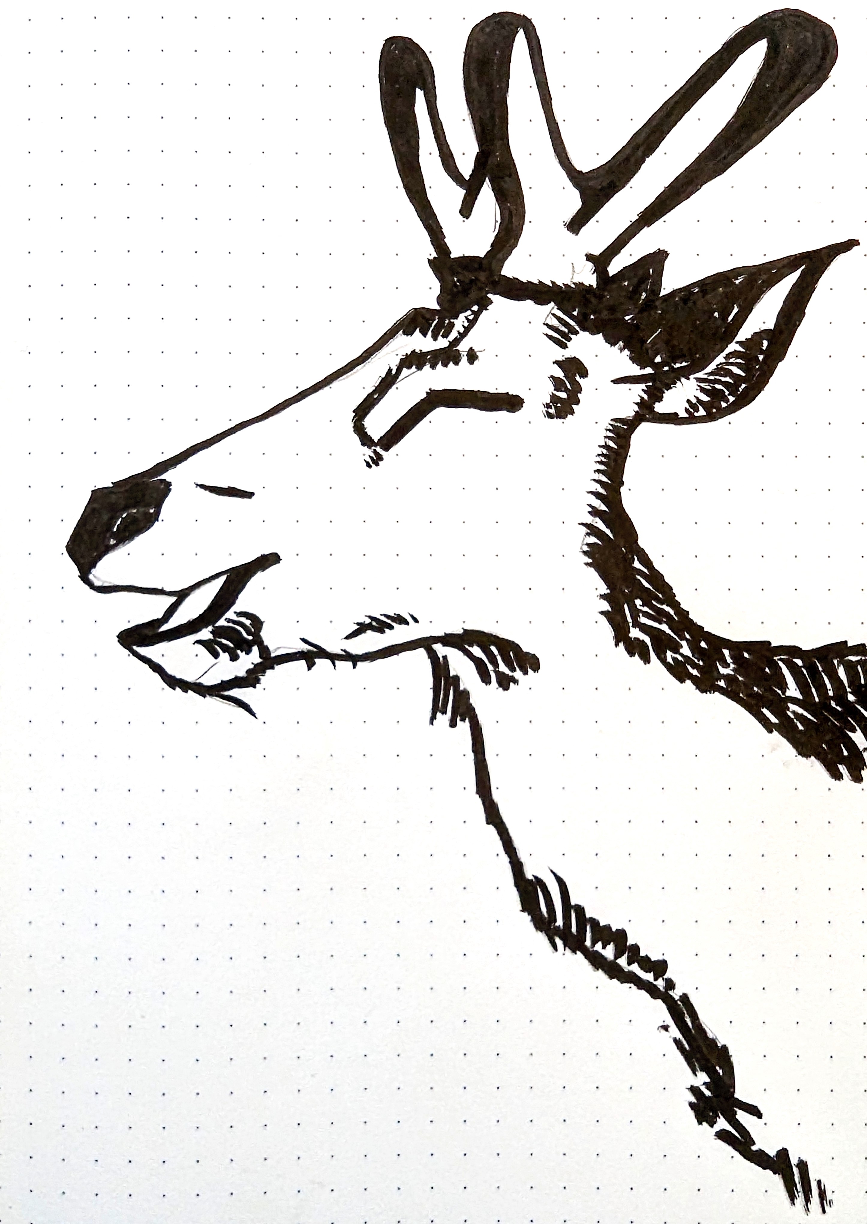 Categories Photos Shika A quick brush-only sketch of a smiling deer. Post author By Jacopo "Copons" Tomasone Post date 2023-01-24 No Comments on Shika A quick brush-only sketch of a smiling 鹿. Shika Tools LEUCHTTURM1917 dotted sketchbook (80 g/m², 145×210 mm). Uni-ball Kuru Toga mechanical pencil, with Uni-ball 0.5 HB nano diamond leads. Sakura Pigma Brush. macOS Preview’s color adjustment tool. Share this: Share on X (Opens in new window) X Share on Facebook (Opens in new window) Facebook Share on Tumblr (Opens in new window) Tumblr Share on Reddit (Opens in new window) Reddit Like Loading... Related Tags deer, drawings ← Seagull → Miso Leave a comment Cancel reply Δ